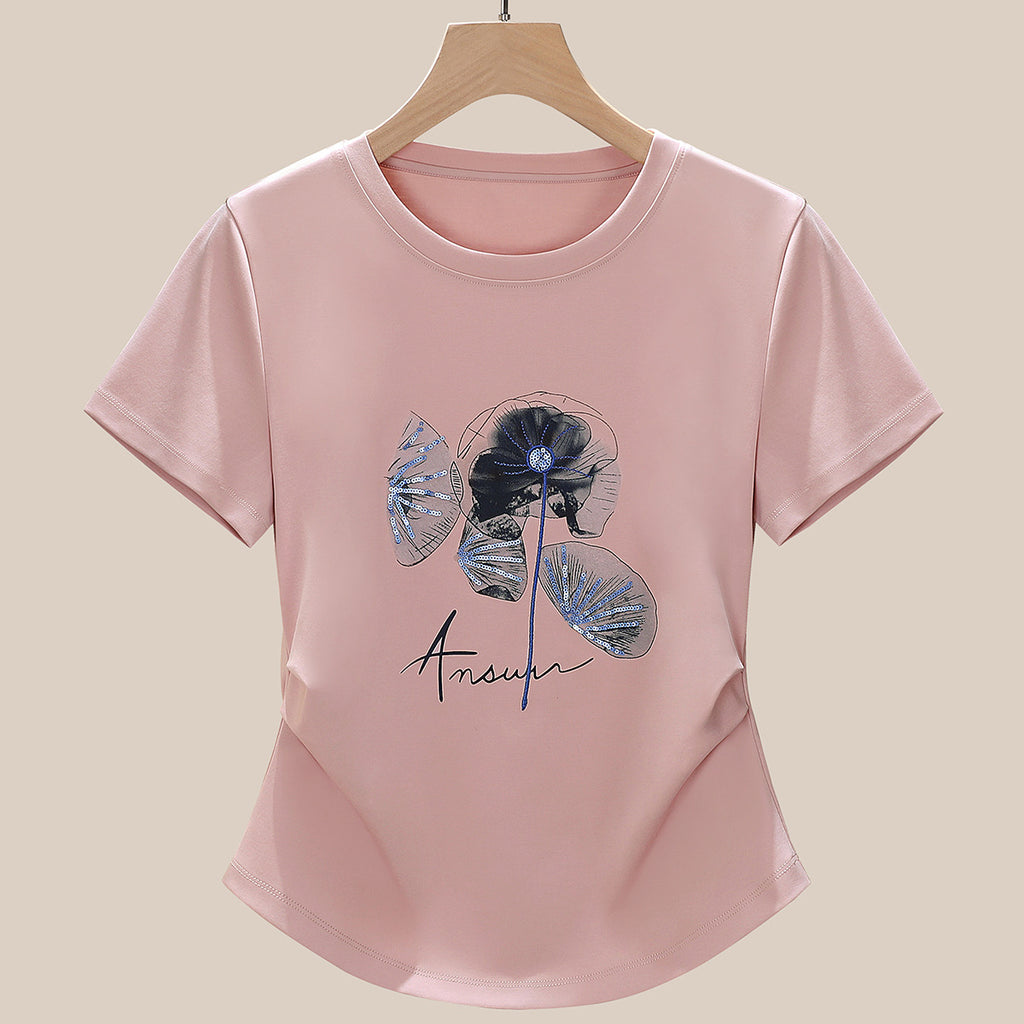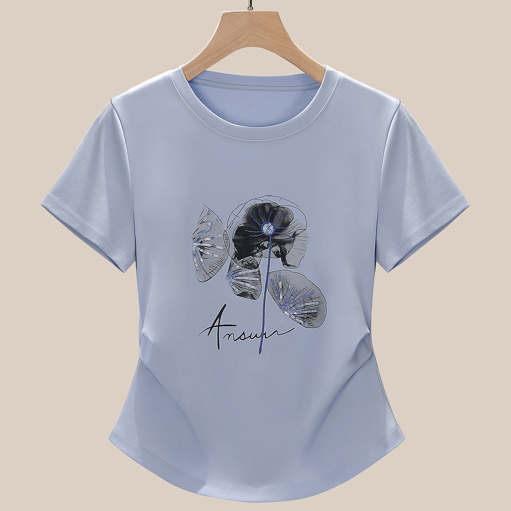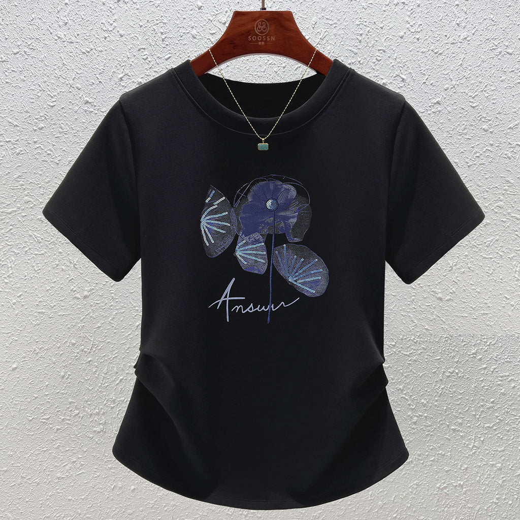 ブルーミーフラワー 刺繍アクセント Tシャツ