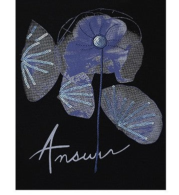 風にそよぐ花びらを、繊細なプリントと立体的な刺繍で表現したアートなTシャツ。 水彩画のような淡いタッチのデザインに、きらりと光るスパンコールが上品なアクセントを添えます。