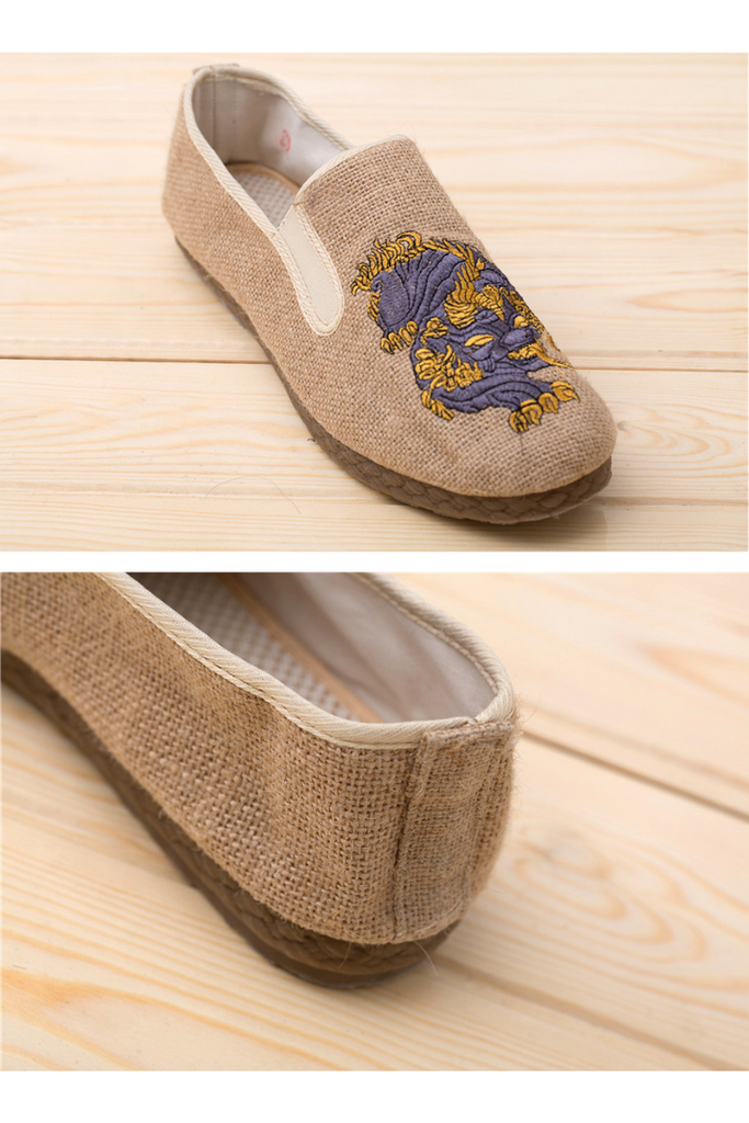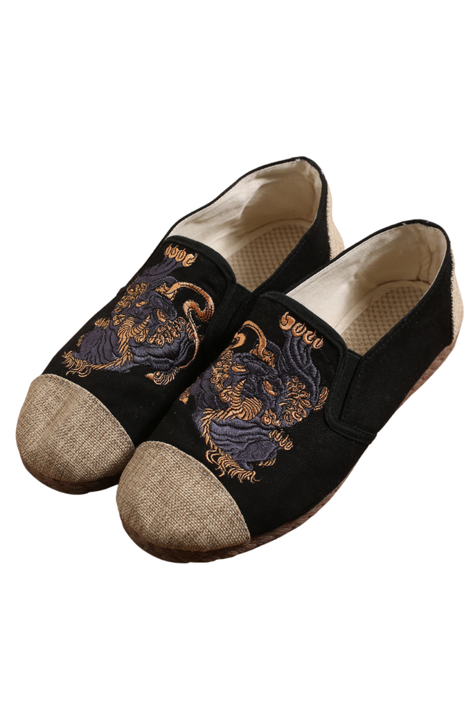 「麒麟の刺繍がアクセントのチャイナシューズ」