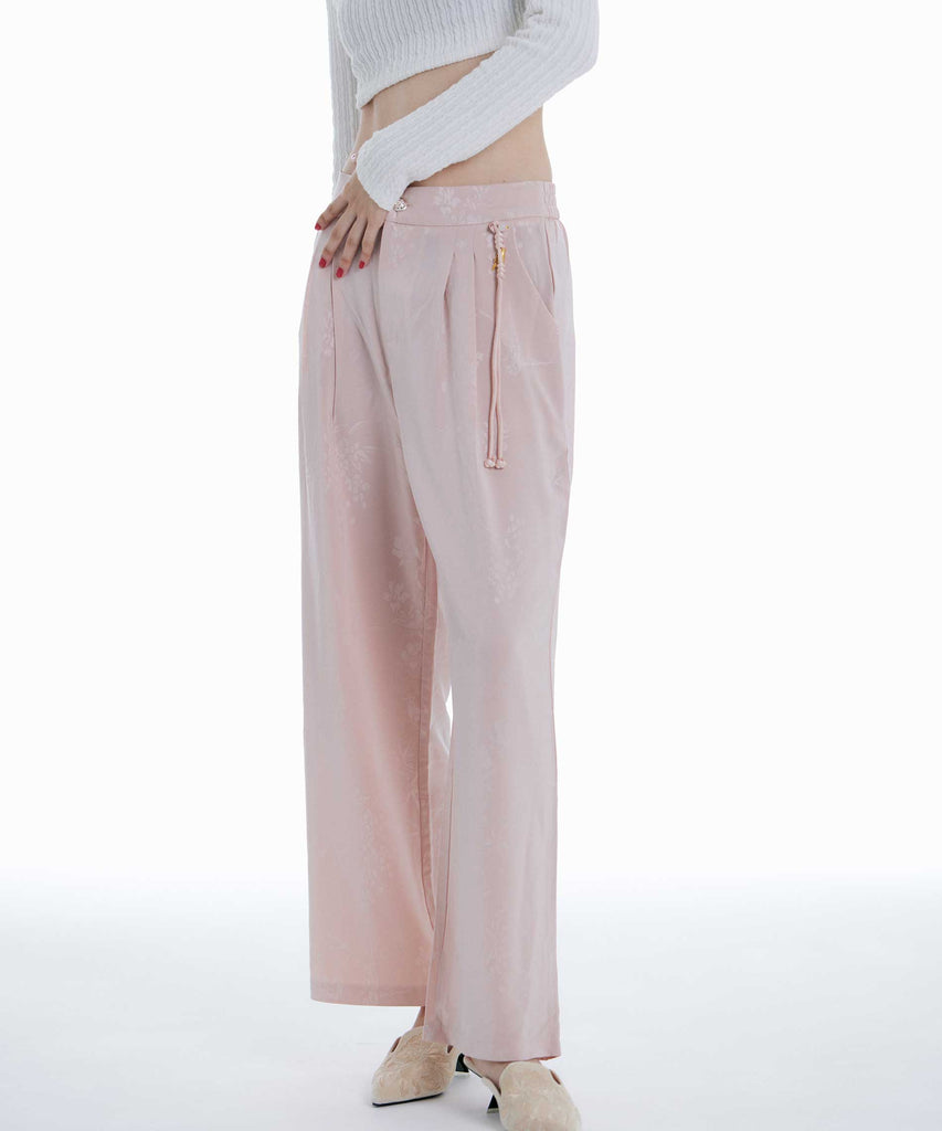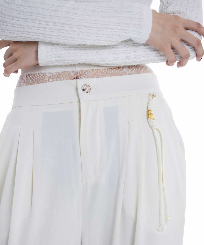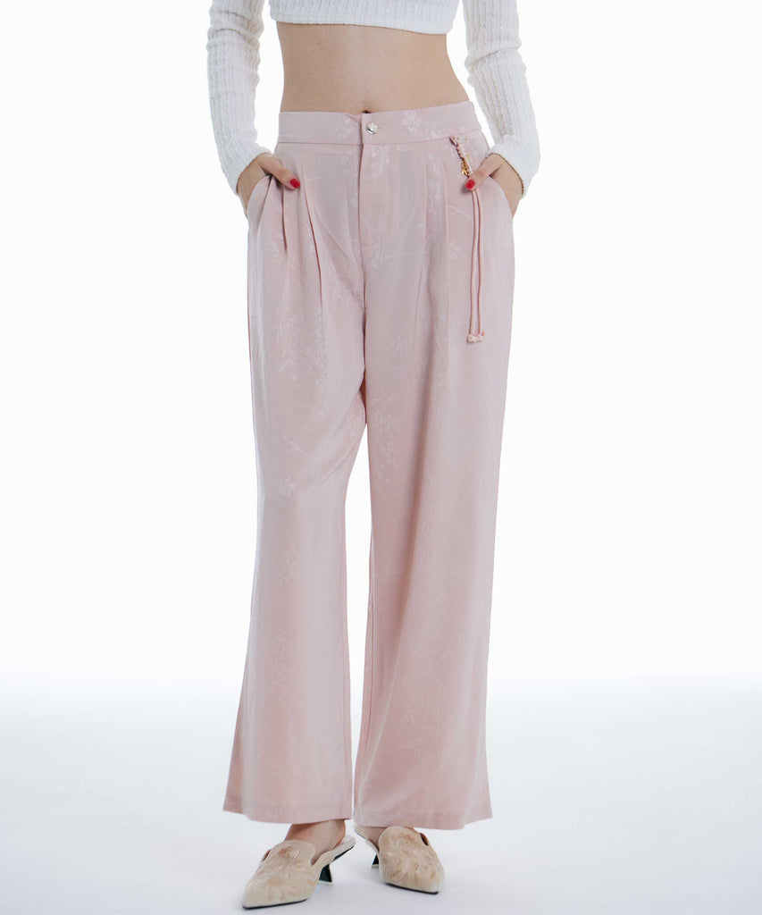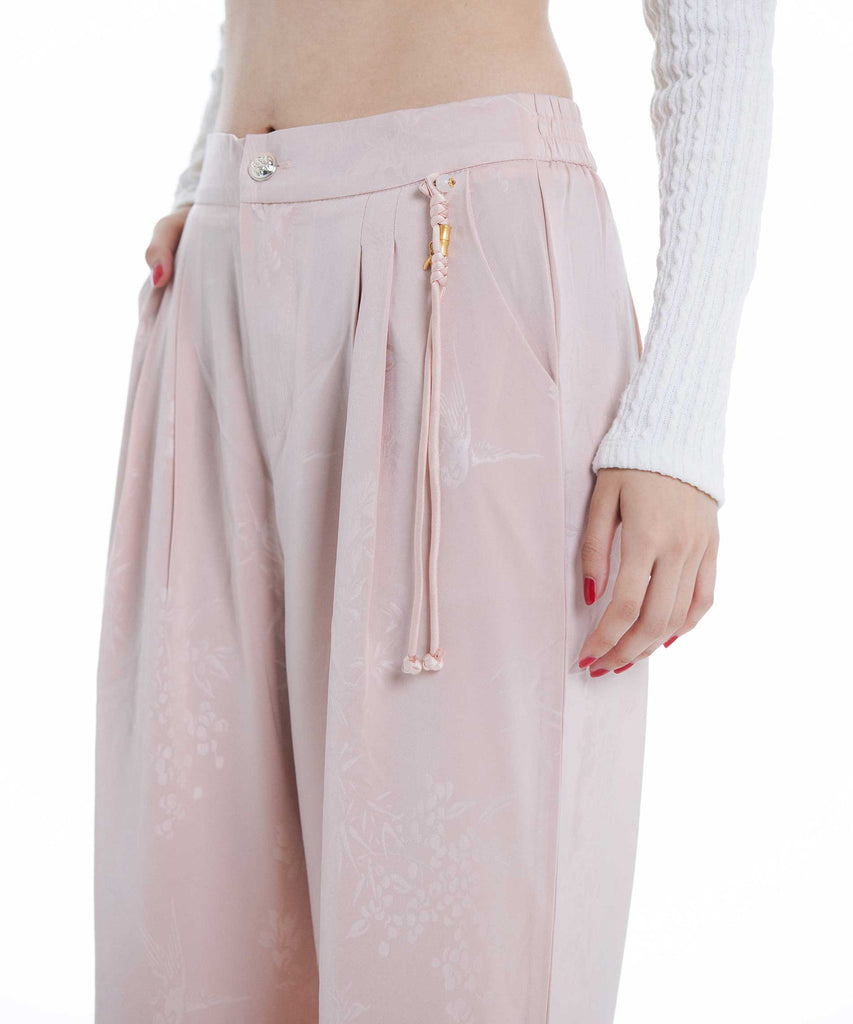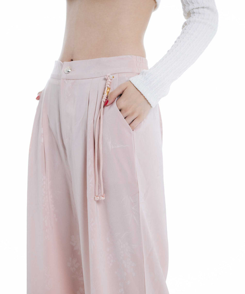 グオチャオ的タッセルが特徴的なエンボスカラーパンツ。
