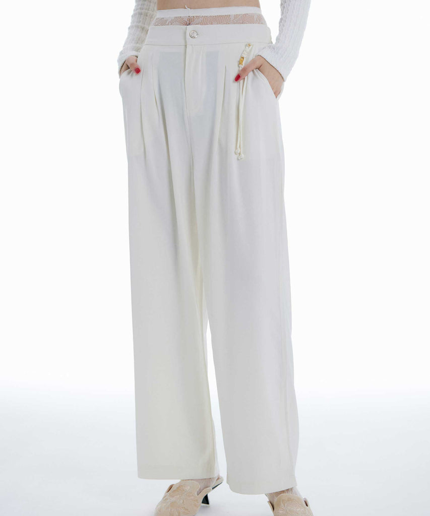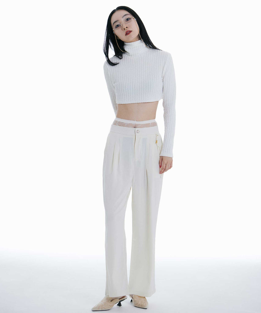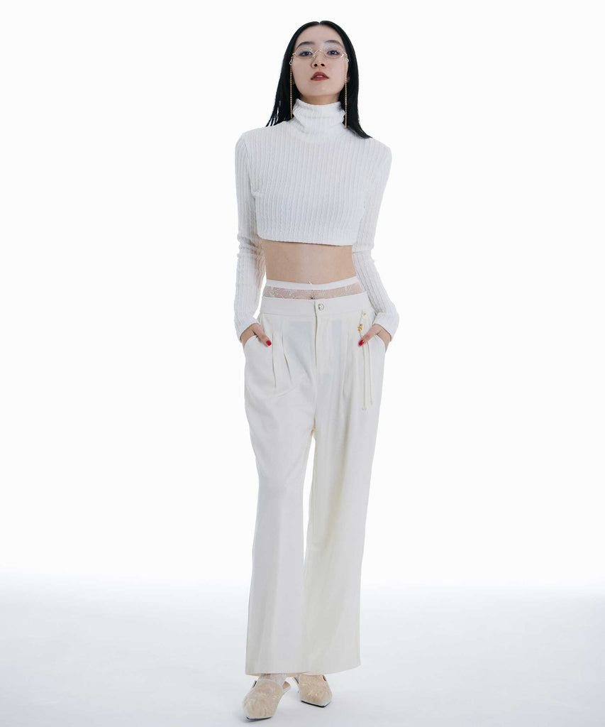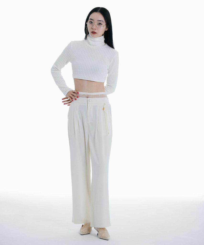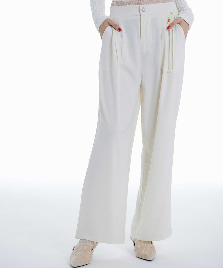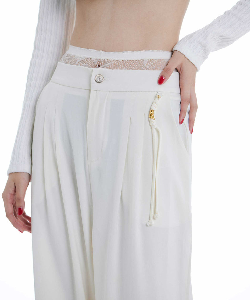 グオチャオ的タッセルが特徴的なエンボスカラーパンツ。