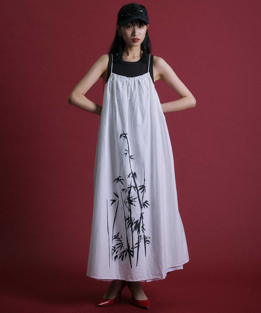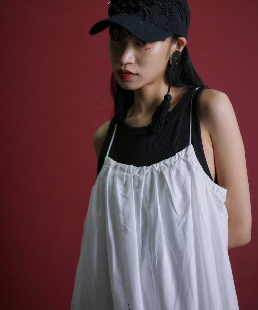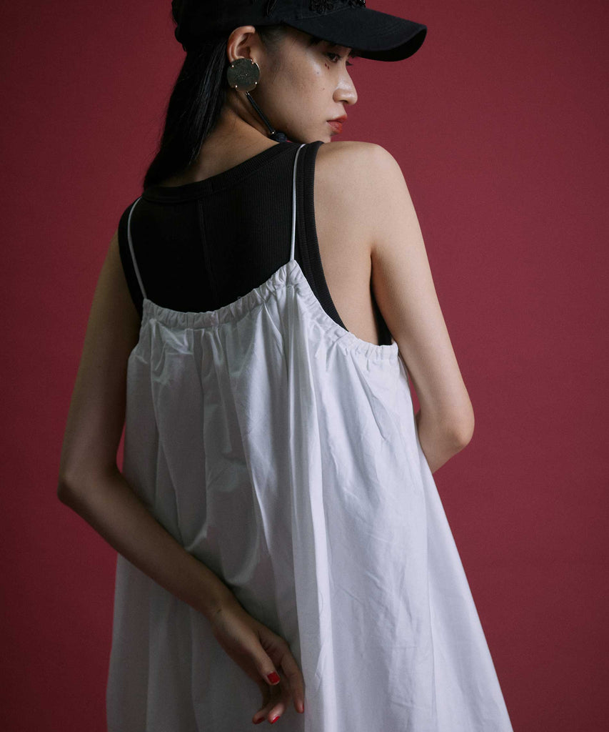 ストラップデザインでカジュアルな印象のワンピース。一枚で夏にレイヤリングに取り入れてみても◎