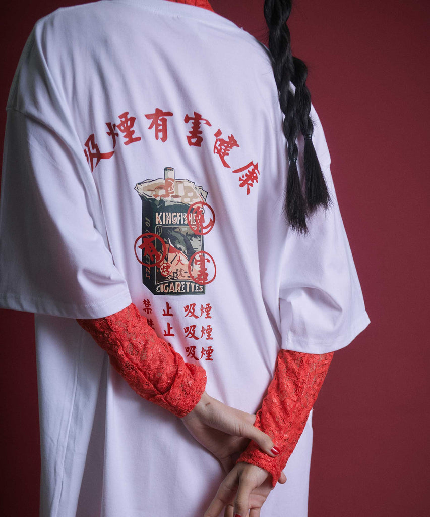 喫煙有害グオチャオレトロチャイナTシャツ