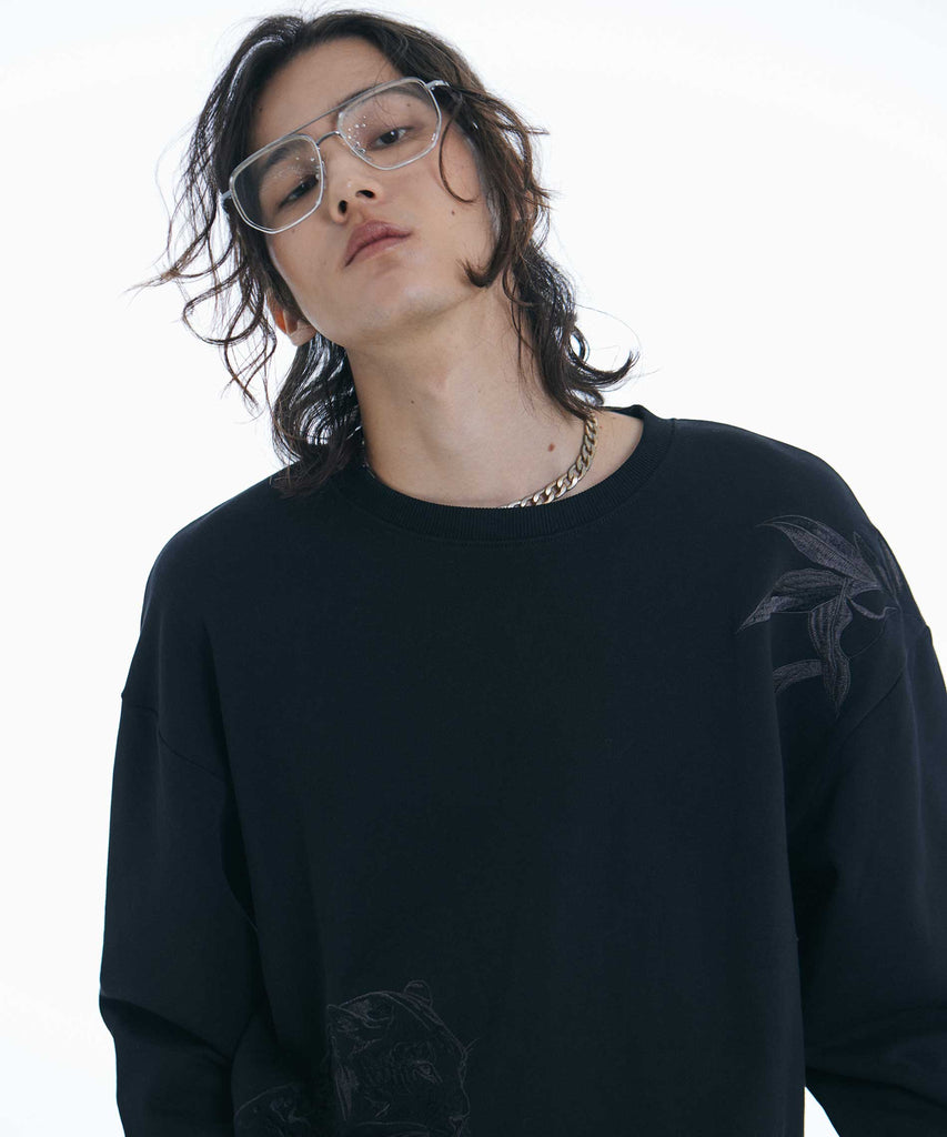 タイガーエンブロイダリーコットンプルオーバースウェット