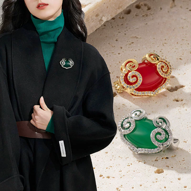 オリエンタルチャーム 祥雲と如意のミニブローチ