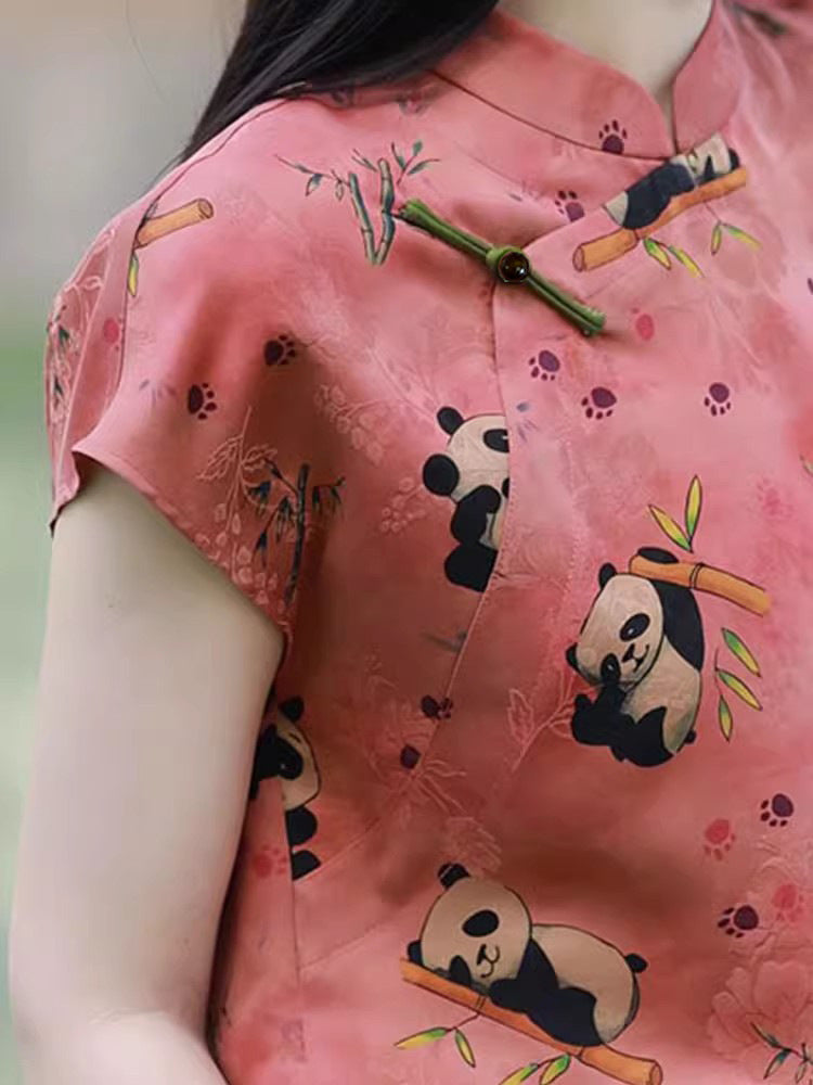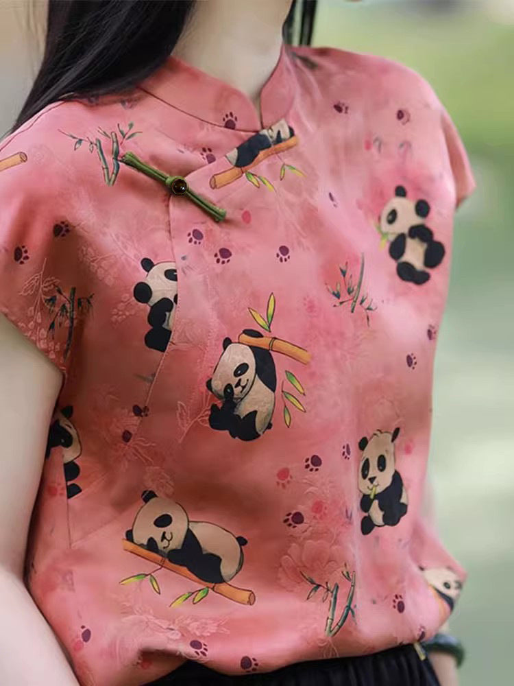 愛らしいパンダと過ごす夏 シノワズリ風チャイナブラウス