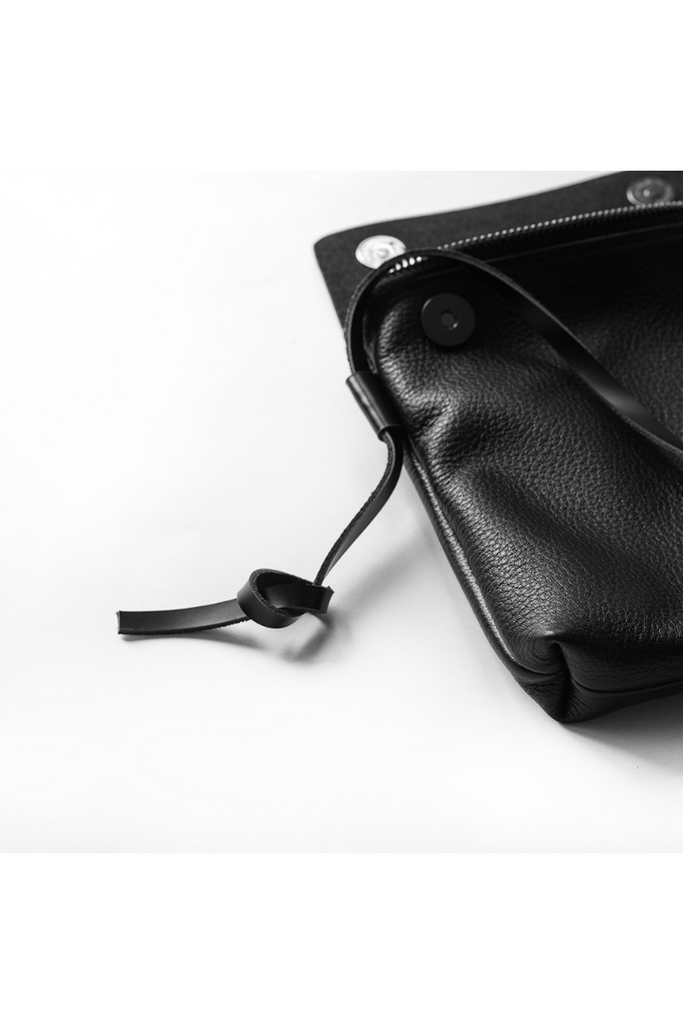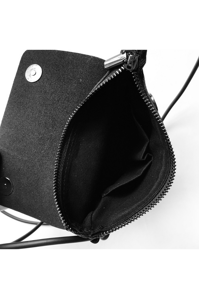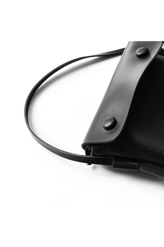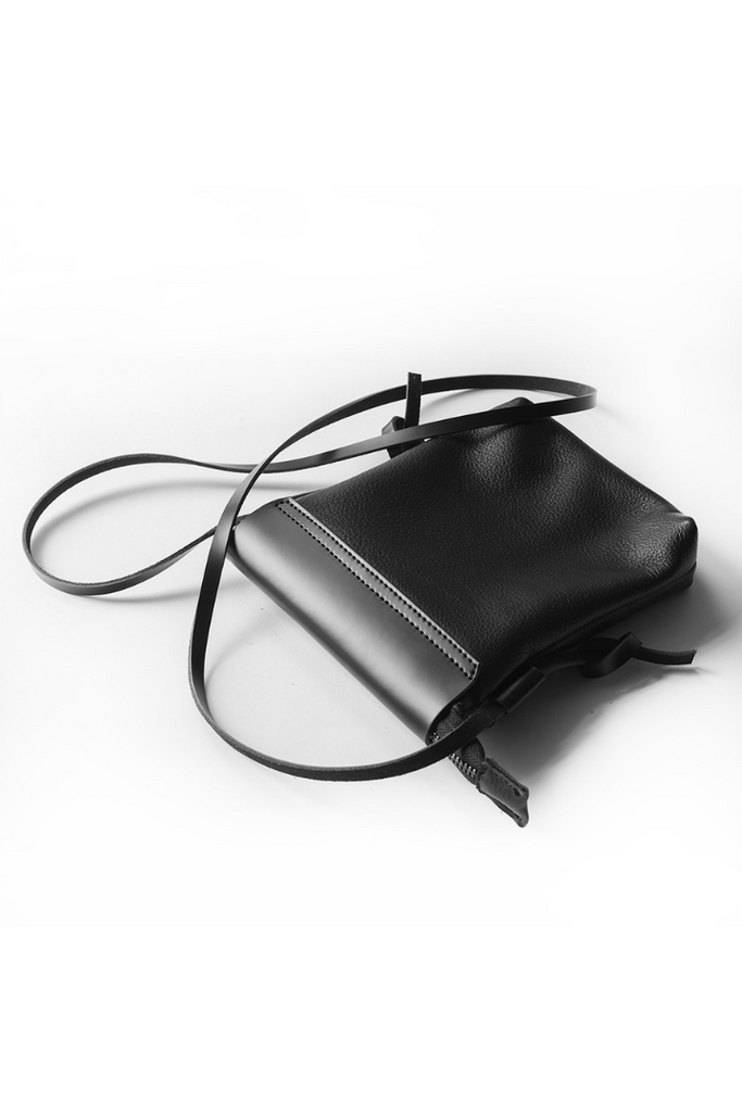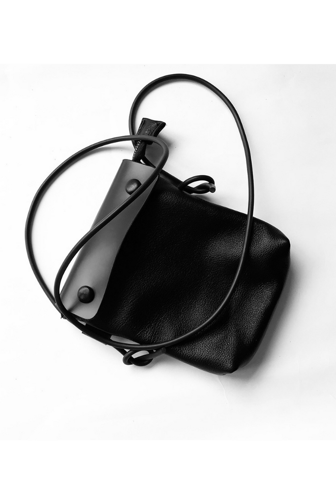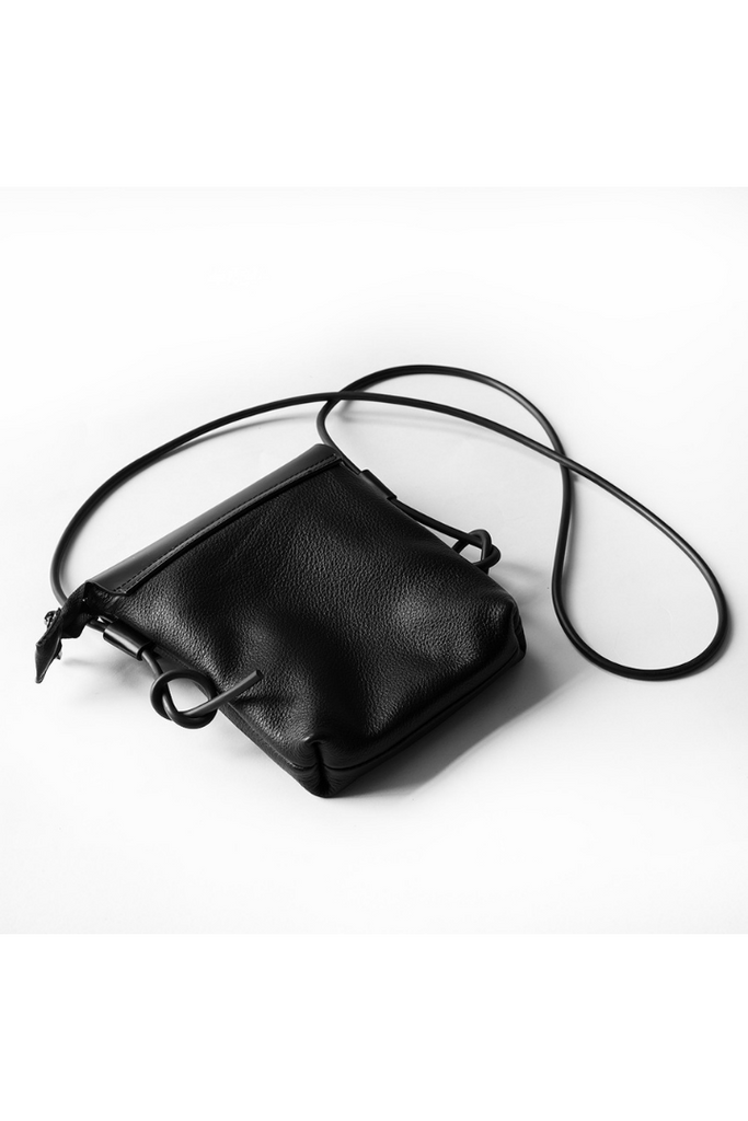 ブラックレザーのミニショルダーバッグ。