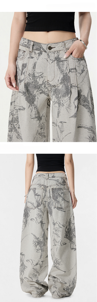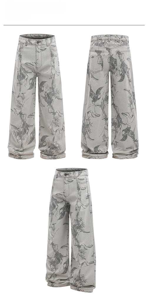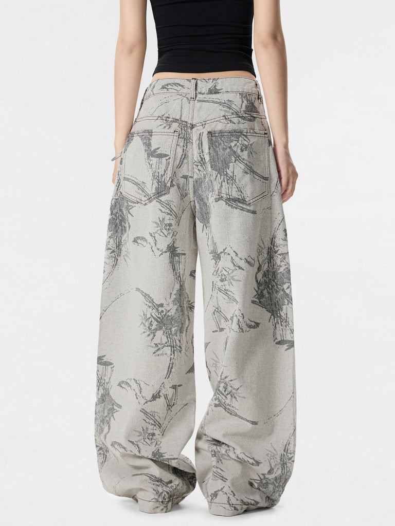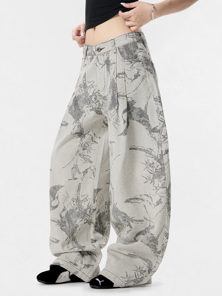 水墨画をモチーフにした幻想的な総柄プリントが、シンプルなコーディネートにも深みと物語を与えます。 ゆとりあるハイウエストとワイドなシルエットは、体型を問わずスタイリッシュな着こなしをアシスト。 リラックス感とデザイン性を両立した、まさに出かけるのが楽しみになる一本です。