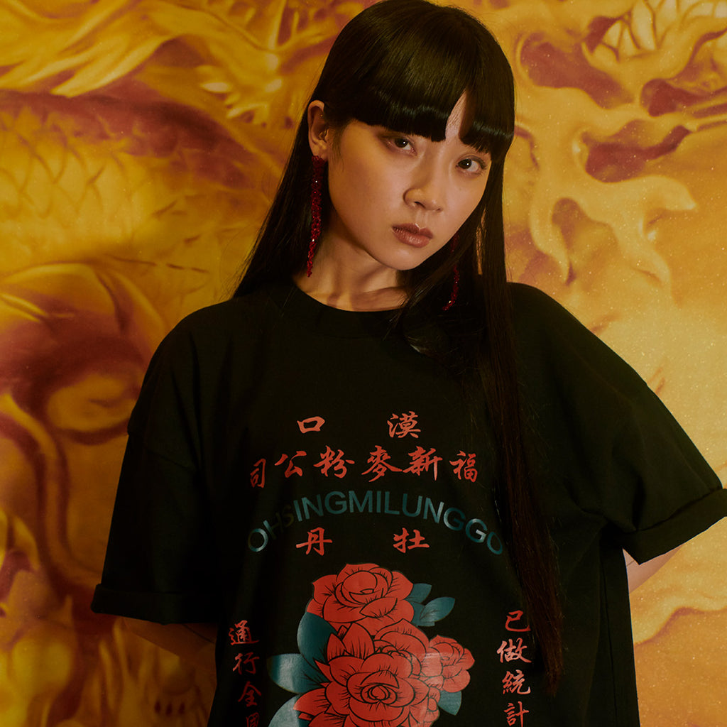 レトログラフィックチャイナTシャツ【BK】
